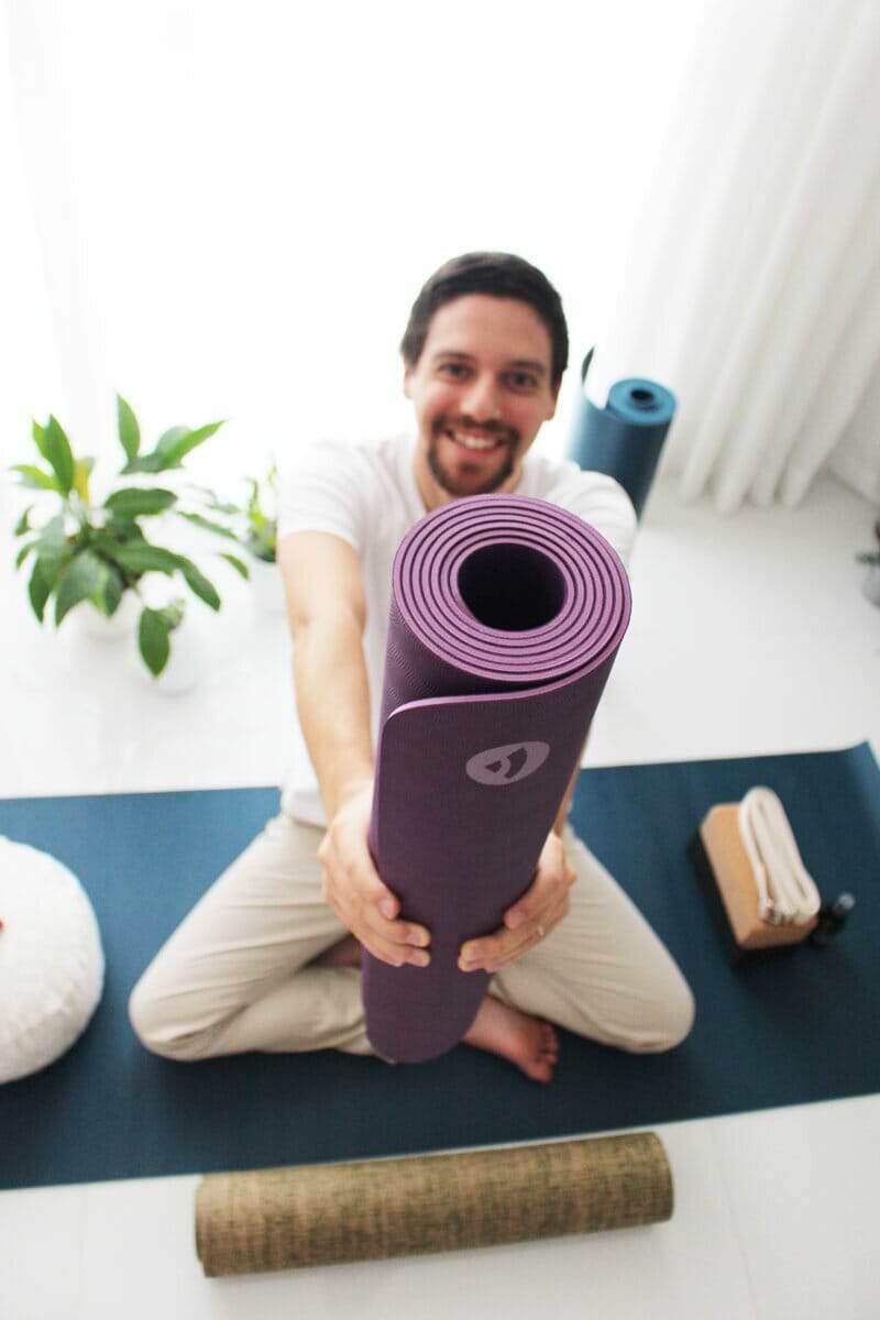 Ter o próprio tapete de yoga também reflete o compromisso com uma prática constante e diária, já que assim podemos praticar em qualquer momento e local.